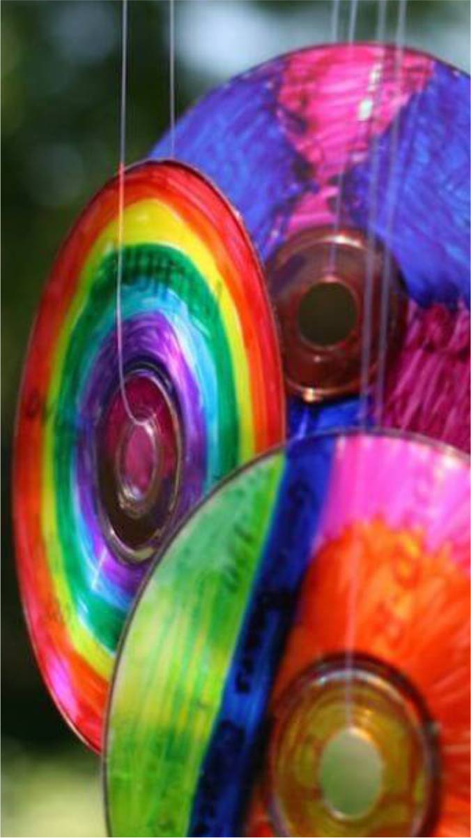 कुछ सीडी ले और अपनी पसंद के कुछ कलर ले, उसके ऊपर अपनी पसंद के रंग करे और सुख जाने के बाद उसमे धागा डाल दे और अपने घर के किसी भी कोने मे लटका दे ।