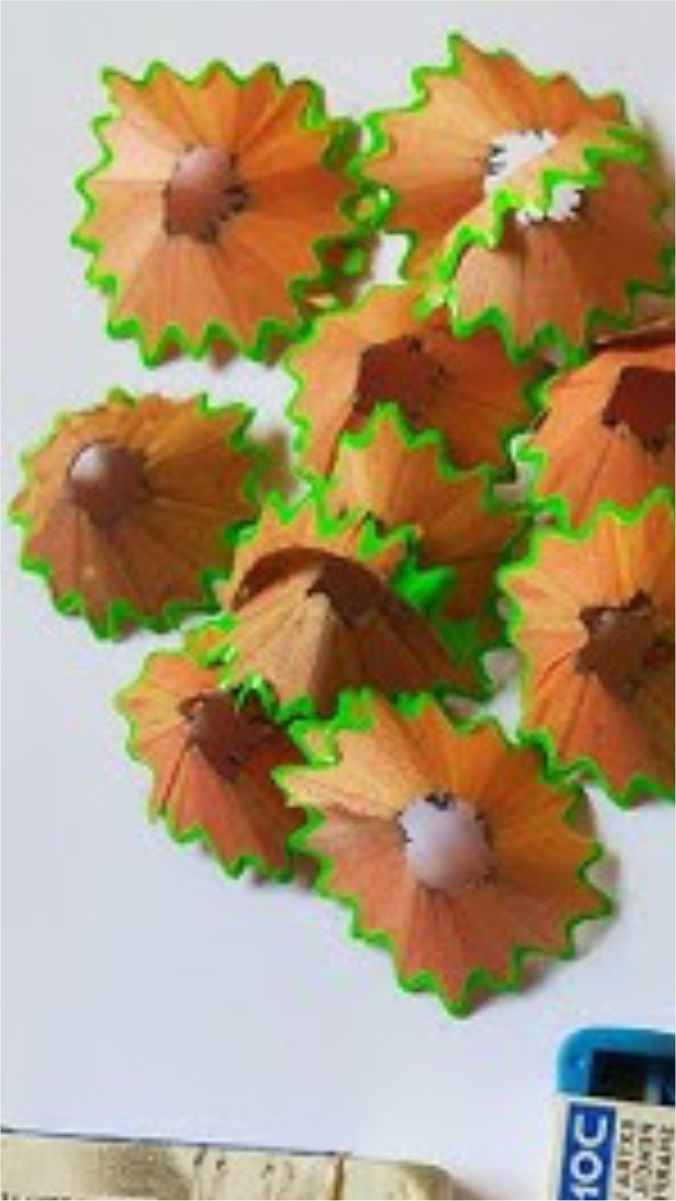 Butterfly ड्रॉ करने के बाद जमा किये हुए पेंसिल के छिलके ले ।